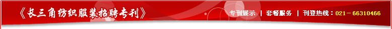服装人才网为了给长三角及周边地区服装纺织企业提供更完善的服务,为地区性人才寻求更便捷的平台的宗旨,推出了《长三角纺织服装招聘专刊》。本报刊以长三角地区为主,每月一期,发行12000份,内容包括企业招聘、信息推广、人才推荐等栏目,让企业可以通过这个渠道寻求最理想的人才,同时在一定程度上为其扩大知名度。而求职者亦能各尽其才,找到最理想的工作。